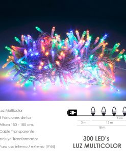 Luces Navidad 300 Leds Color Multicolor IP44 Cable Transparente