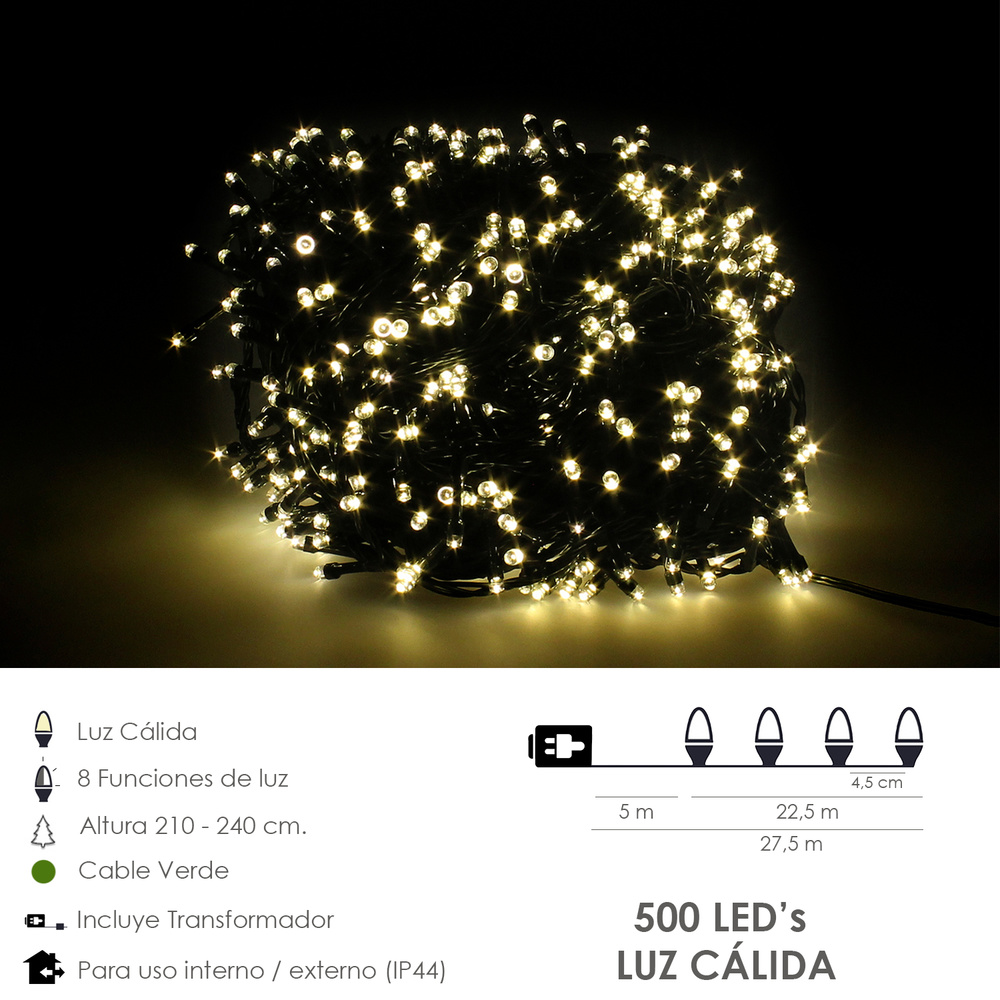 Guirnalda Luces Navidad 500 Leds Color Blanco Calido. Luz Navidad Interiores y Exteriores Ip44