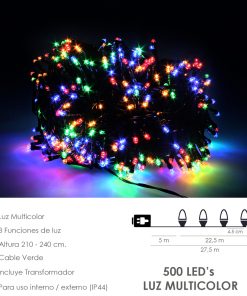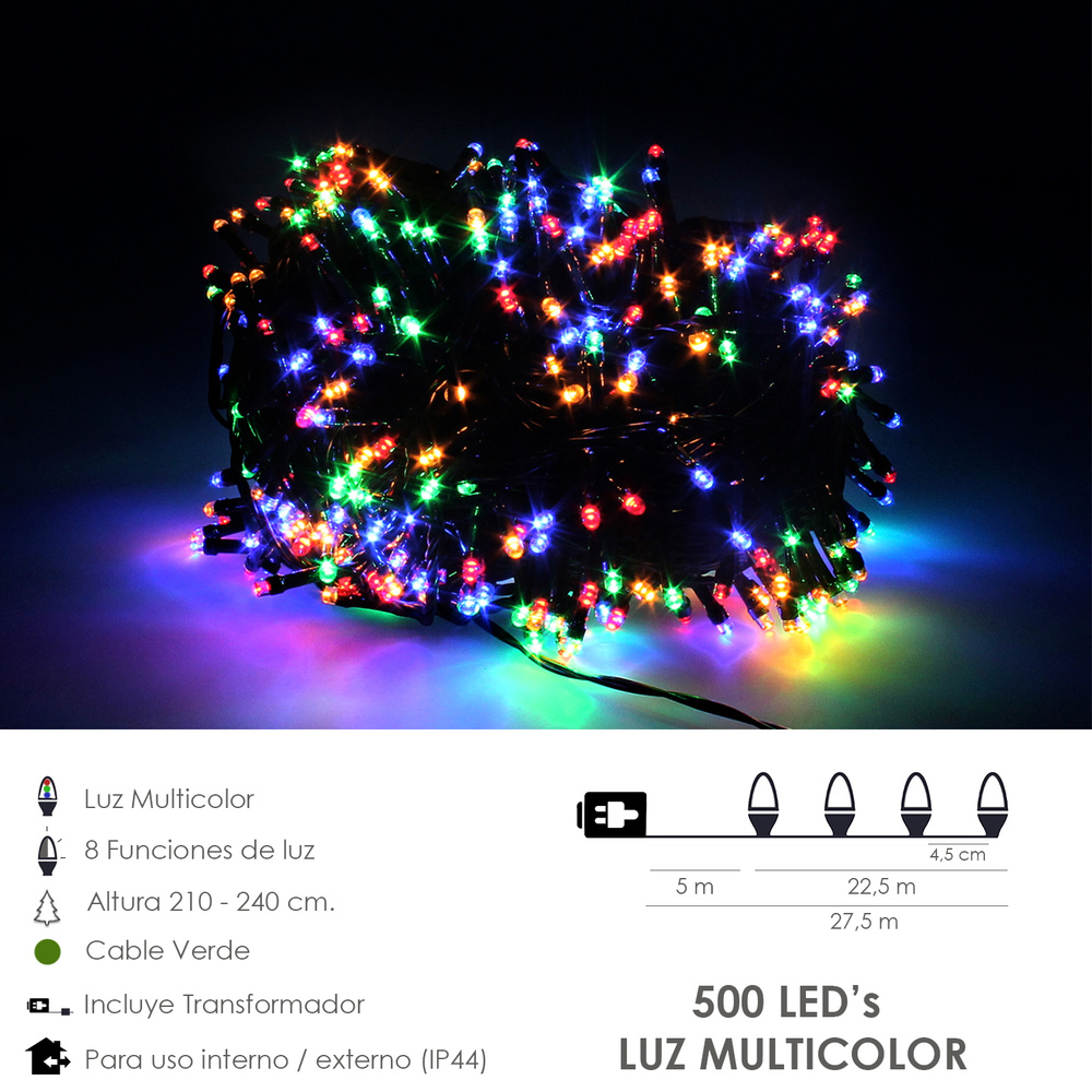 Guirnalda Luces Navidad 500 Leds Multicolor. Luz navidad interiores y exteriores IP44