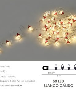 Guirnalda Luces Navidad A Pilas 50 Leds Papa Noel. Luz Calida Uso Interno IP20