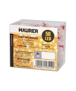 Guirnalda Luces Navidad A Pilas 50 Leds Papa Noel. Luz Fria Uso Interno IP20