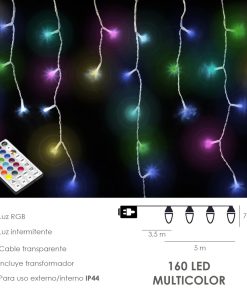 Guirnalda Luces Navidad Cortina Regulables 5×0,7 Metros 160 Leds Luz Multicolor Uso interior / Exterior IP20 Cable Transparente