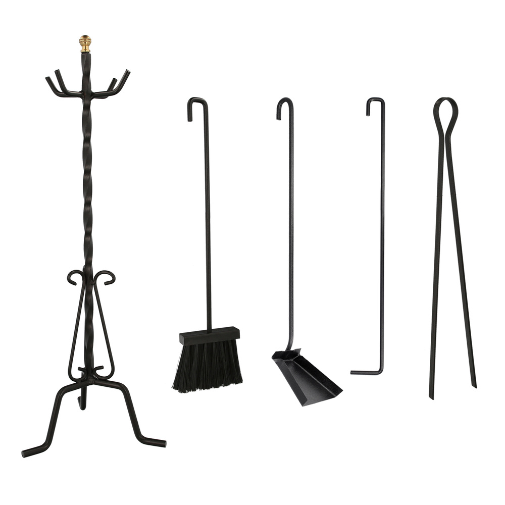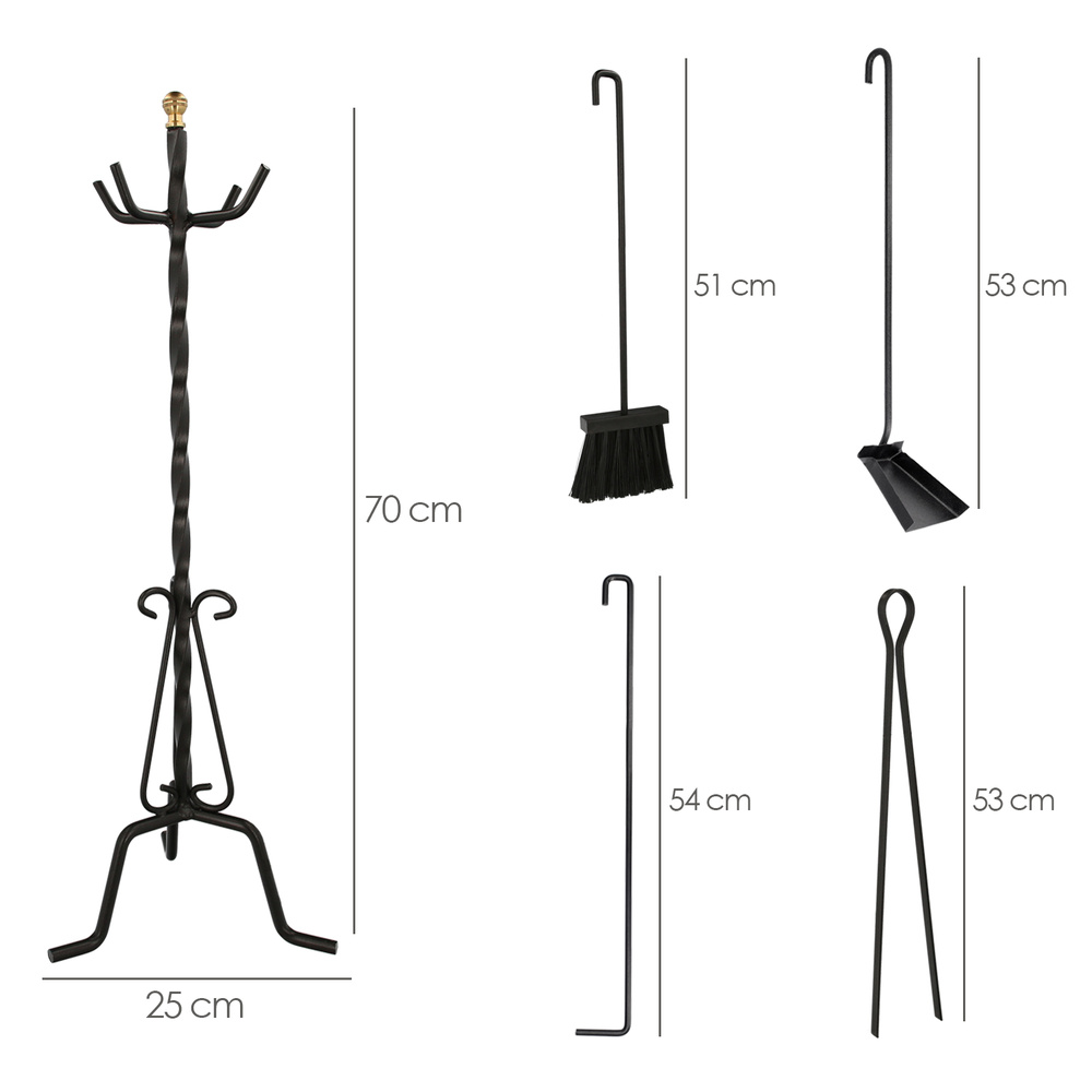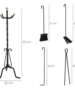 Juego Atizadores 5 Piezas 25×70 (Alt.) cm. Soporte, Cepillo, Recogedor, Atizador y Pinzas. Hierro Forjado