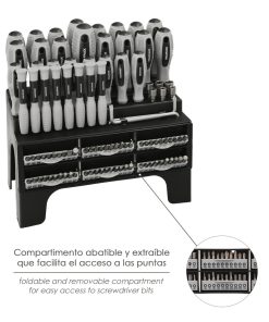 – Con soporte organizador para tener todos los destornilladores y puntas ordenados.