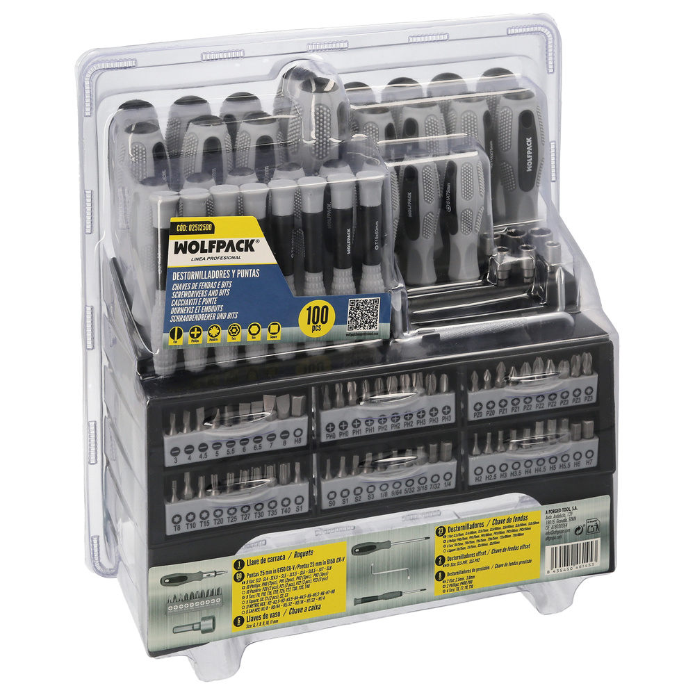Juego de Destornilladores / Destorpuntas 100 Piezas Con Soporte Expositor