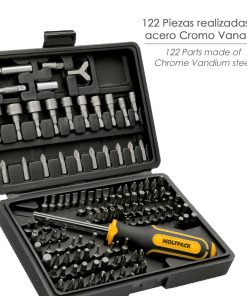 Juego Puntas con Destornillador 1/4″ 122 Pzs. Con Apadtador. Cromo Vanadio, Kit Llave Combinada, Kit Carraca,