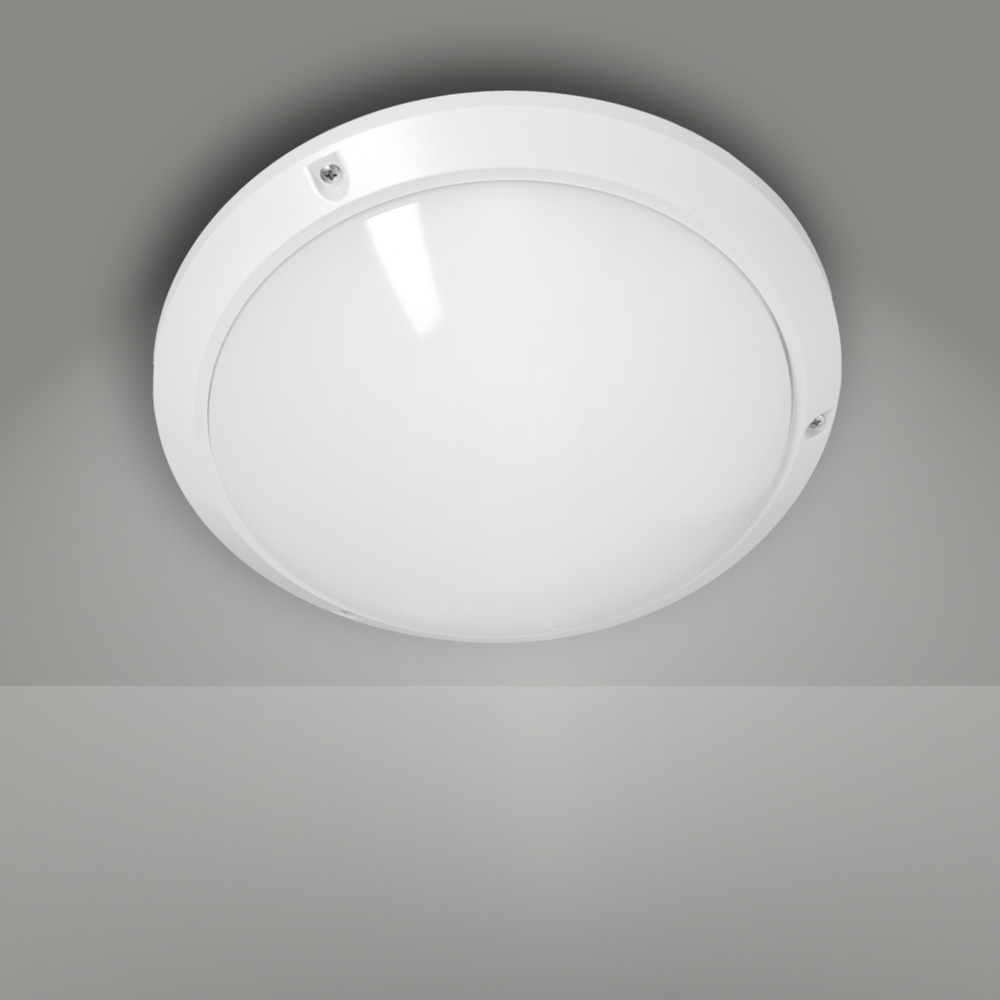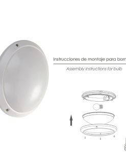 – Plafón impermeable de color blanco, se puede instalar tanto en exterior como en interior. Se fija fácilmente a la pared o al techo con tacos simples y los cables se conectan al bloque de terminales.