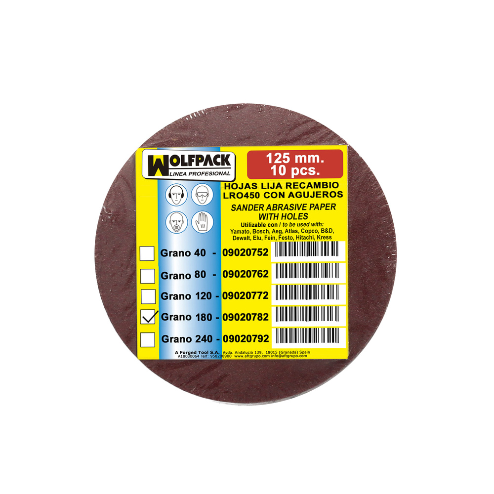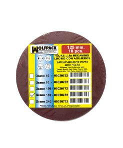 Lija Recambio Velcro Disco Ø 125 mm. Con Agujeros Grano 180 (10 Piezas)