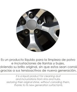 – Es un producto liquido que elimina el polvo y las incrustaciones de llantas y bujes, devolviéndoles su brillo original.