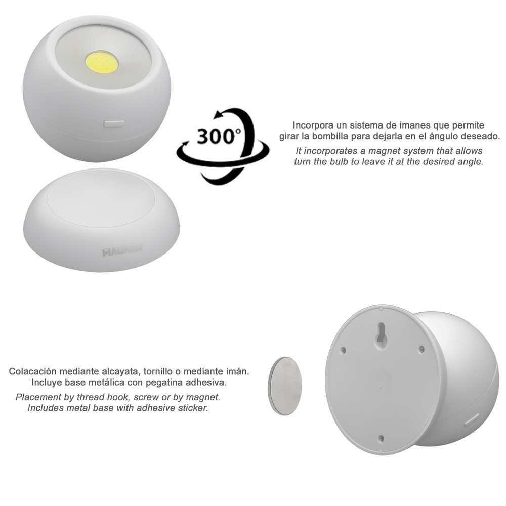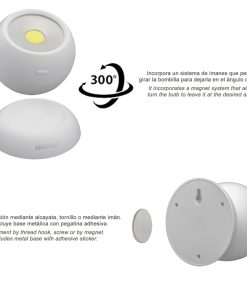 Linterna LED Armario Esfera A Pilas (3 AAA) 120 Lumenes Ajustable 300º Con Iman y Adhesivo.