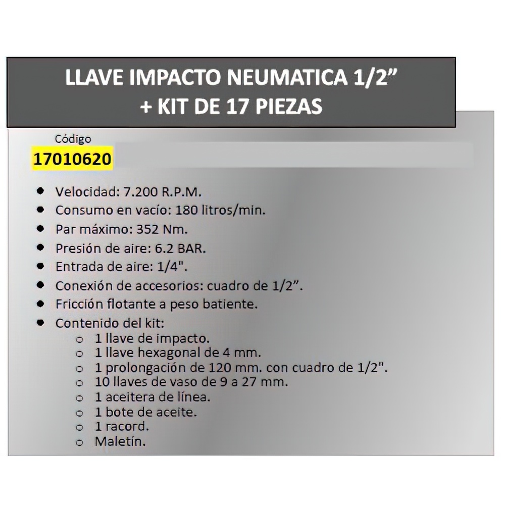 Llave Impacto Neumatica Yamato 1/2″ con Kit 17 Piezas