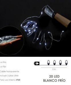 Luces Navidad Led Con Tapon 20 Microled Blanco Frio IP20. A Pilas 3 LR44 (Si Incluidas)