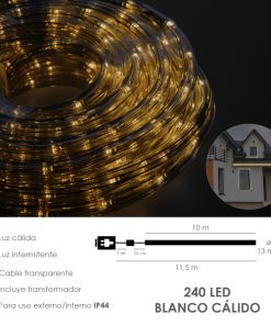 Luces Navidad Tubo Luz Blanca Calida 240 LEDs Uso Exteriores / Interiores Protección IP44 Rollo 10 Metros