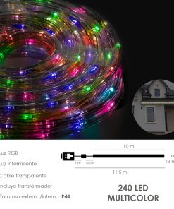 Luces Navidad Tubo Luz Multicolor 240 LEDs Uso Exteriores / Interiores Protección IP44 Rollo 10 Metros