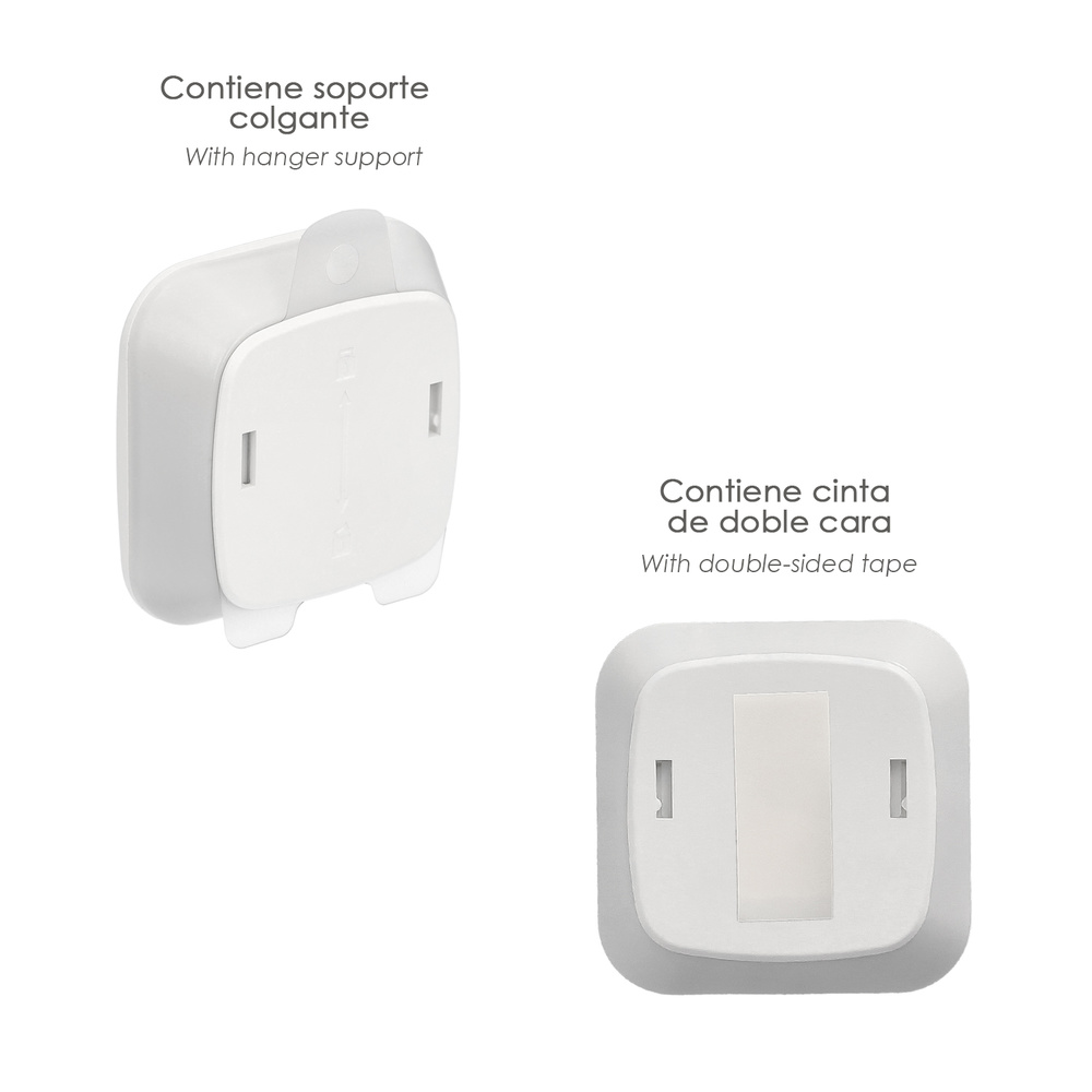 – Para su instalación incluye una cinta de doble cara o un soporte para ser colgado.