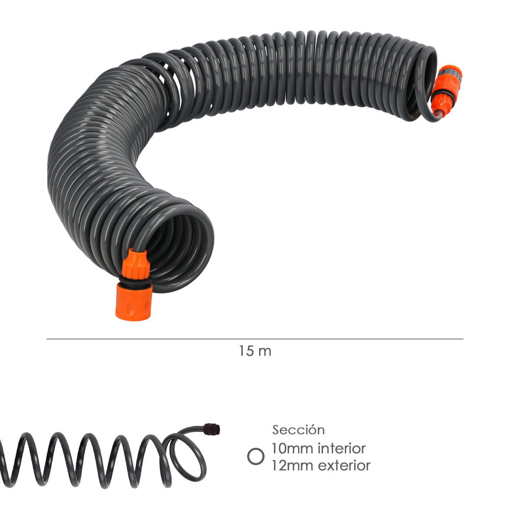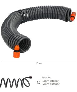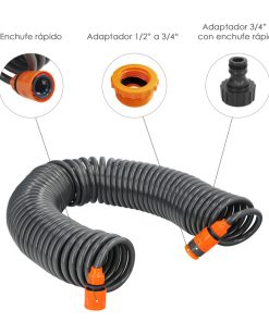 Manguera Extensible Espiral Autoenroscable Para Riego Jardin Con Conectores 15 Metros