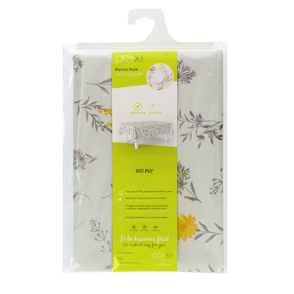 Mantel Antimanchas Hule Rectangular 140 x 250 cm. Flores Amarillas