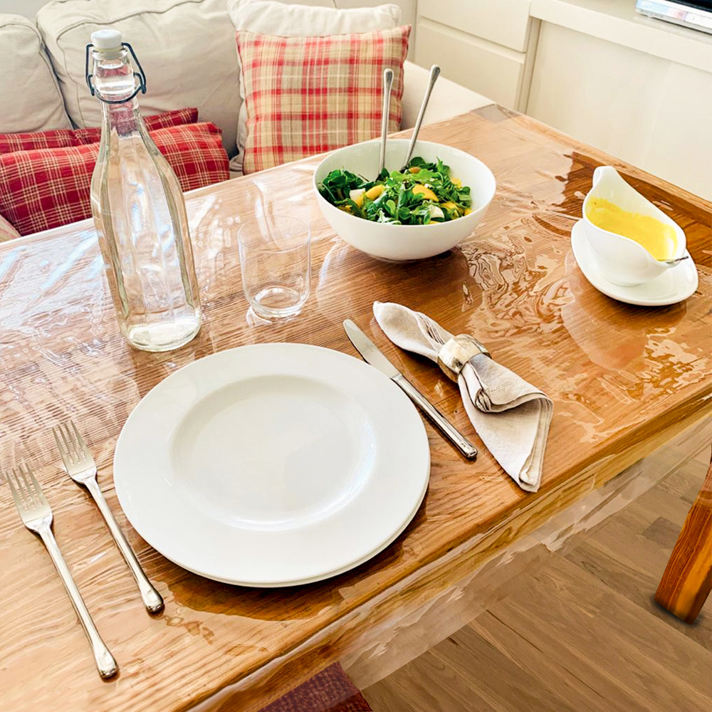 – Mantel Hule transparente. Diseño moderno y elegante para cualquier ocasión.