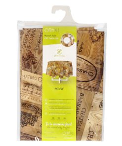 – Mantel Hule estampado en color madera imitando una composición cajas de vino. Diseño moderno y elegante para cualquier ocasión.