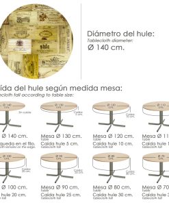 Mantel Antimanchas Hule Redondo Ø 140 cm. Tablones Vino