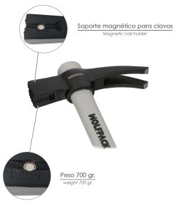 Martillo Encofrador Magentico Con Mango Fibra Vidrio 700 Gramos