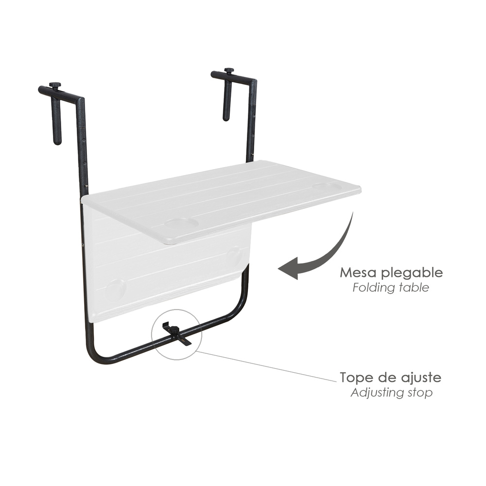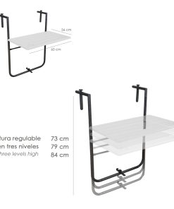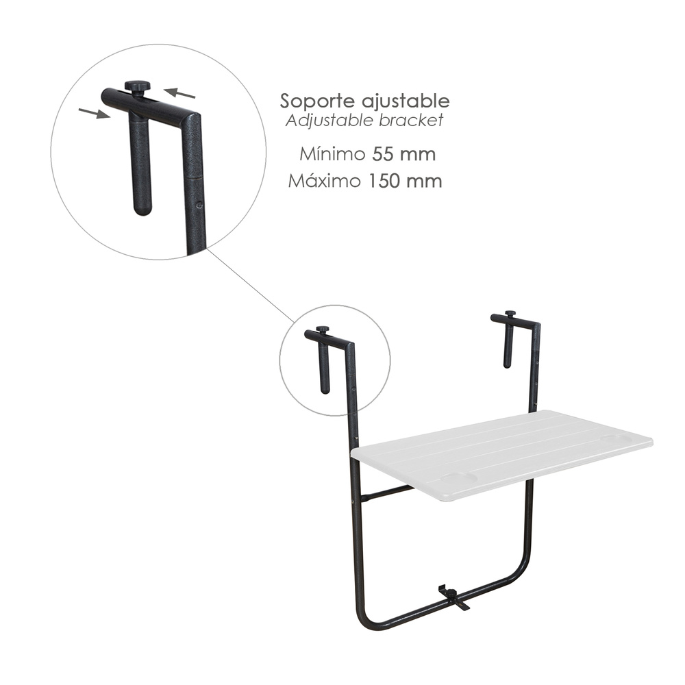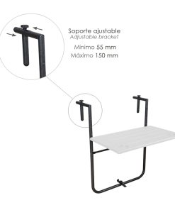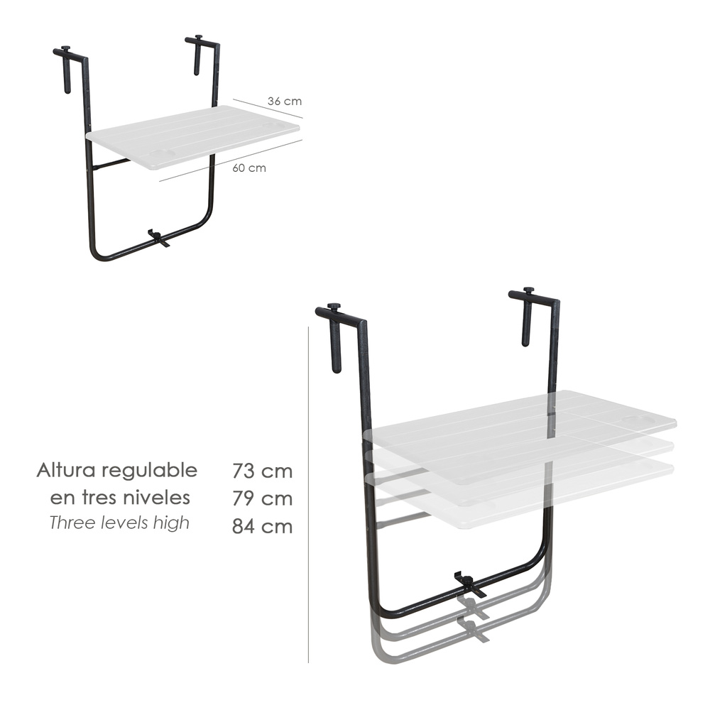 Mesa Plegable Colgante Para Balcones / Terrazas 36×60 cm. Altura Regulable