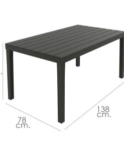 Mesa Resina Lamas Antracita Sumatra 138x78x72 (Alt) cm.