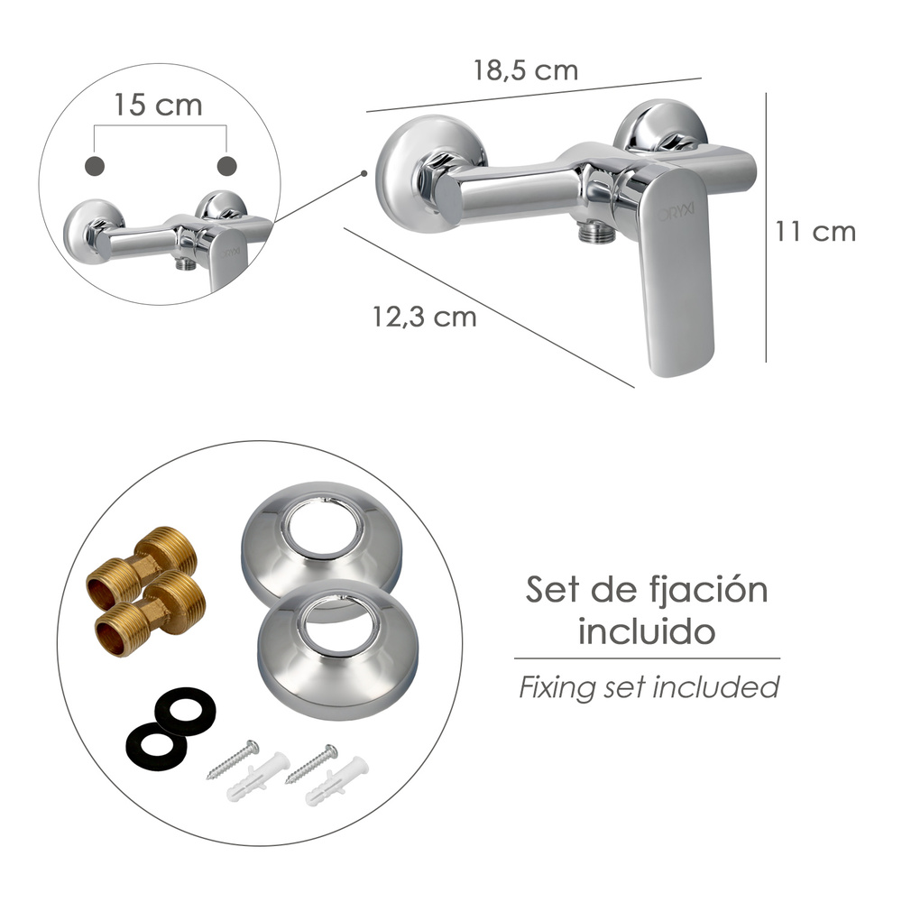 – Incluye maneral de ducha, flexo, soporte y set de fijación.