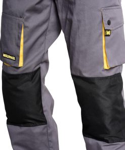 Pantalones Largos DeTrabajo, Multibolsillos, Resistentes, Rodilla Reforzada, Gris/Amarillo Talla 50/52 XL (Slim Fit)
