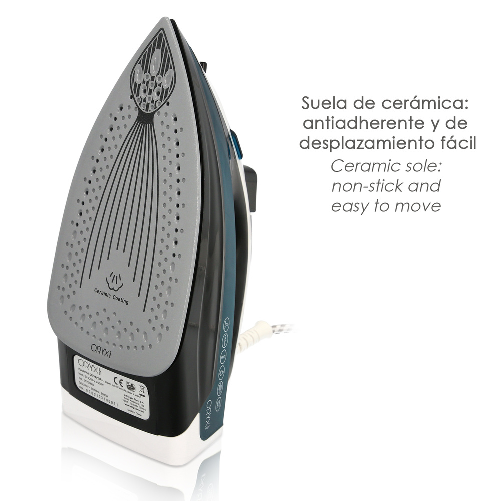 – Suela de cerámica, antiadherente y muy resistente, facilitando el deslizamiento sobre cualquier tejido.