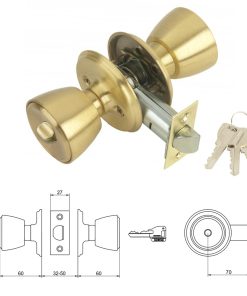 – Cerradura de pomo con picaporte. Pomo libre con llave por el exterior y pomo libre con condena por el interior.