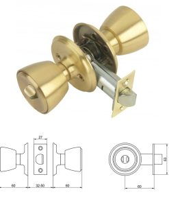 – Cerradura de pomo para puertas con condena con picaporte. Pomo libre con posibilidad de entrada de emergencia por el exterior y pomo libre con condena con botón por el interior.
