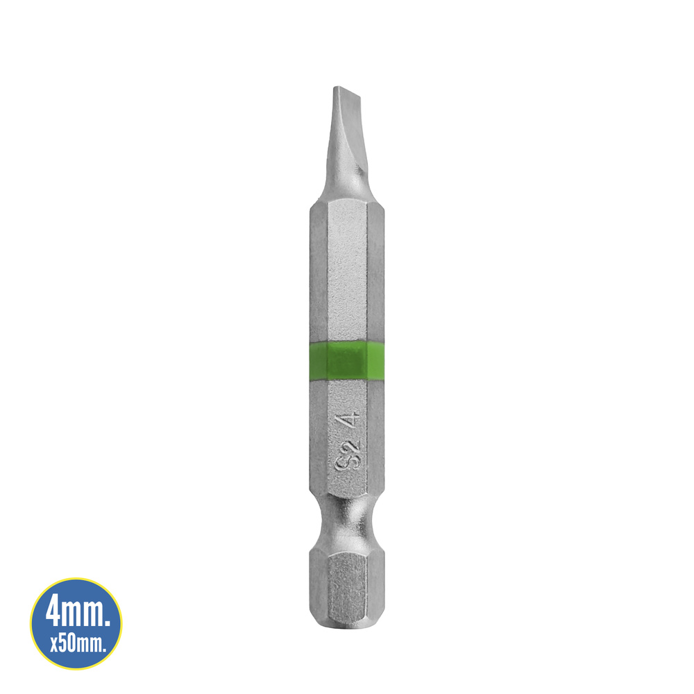 Puntas Destornillador Largo Plano 4 mm. (2 Piezas). Acero S2 al Cromo Vanadio. Puntas Hexagonales, Destorpuntas,