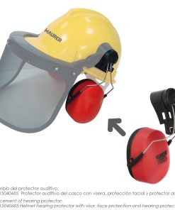 Etiquetas: casco con visera, Protector facial, Protector auditivo, protector oido, kit jardineria, kit poda, casco