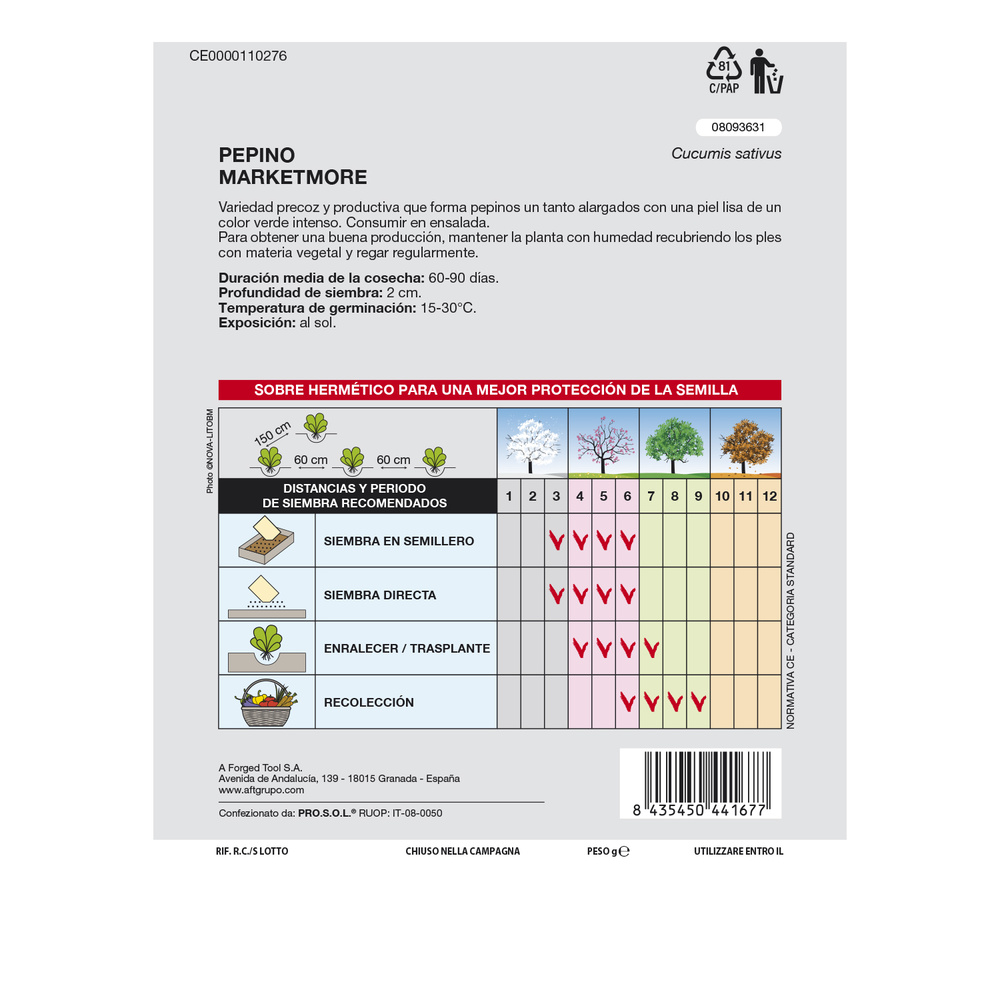 Semillas Pepino Marketmore (5 Gramos) Semillas Verduras, Horticultura, Horticola, Semillas Huerto.