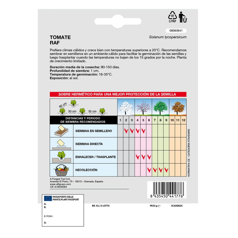 Semillas Tomate Raf (1.5 gramos) Semillas Verduras, Horticultura, Horticola, Semillas Huerto.