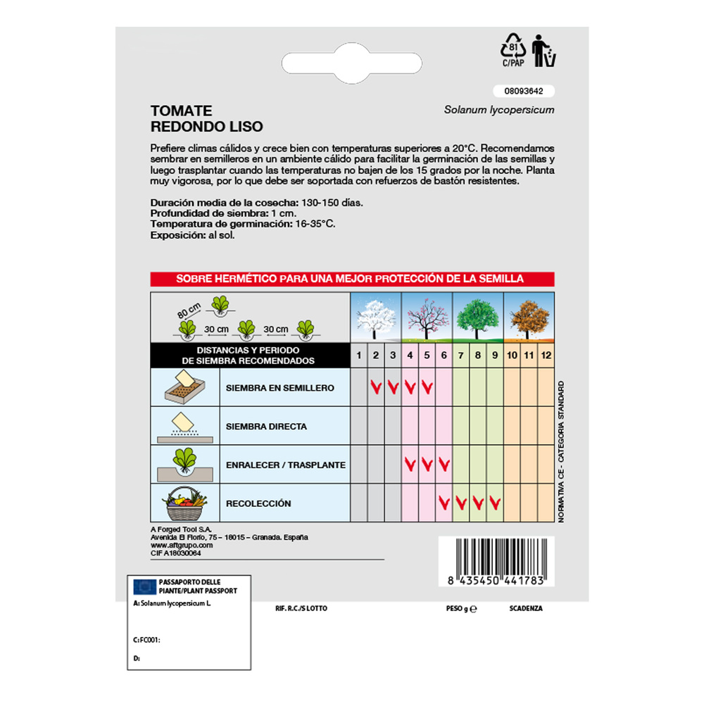 – Temperatura de germinación: 16-35 ºC.