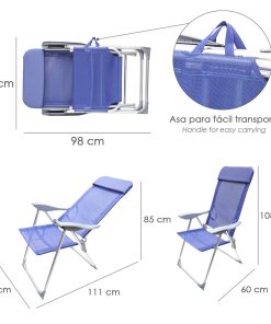 Silla Playa Aluminio 5 Posiciones Azul