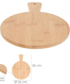 Tabla cortar de madera de bambu redonda con mango