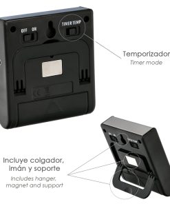 – El lector de temperatura puede ser usado mediante imanes, soporte o usando el agujero para ser colgado.