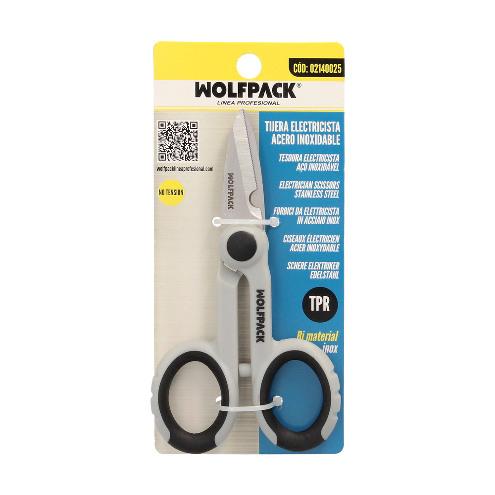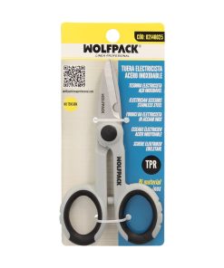 Tijeras Electricista 140 mm. Mango TPR No tension. Hojas Acero Inoxidable, Ergonomicas, Tijeras Cortar Cable, Pelacables
