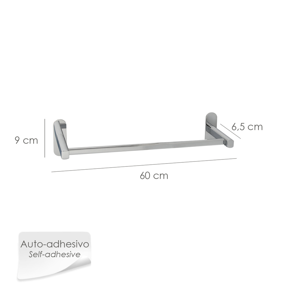 Toallero Barra 60 cm. Color Inox Con Efecto Espejo, Autoadhesivo Resistente, Porta Toallas, Toallero Adhesivo Pared/Mueble