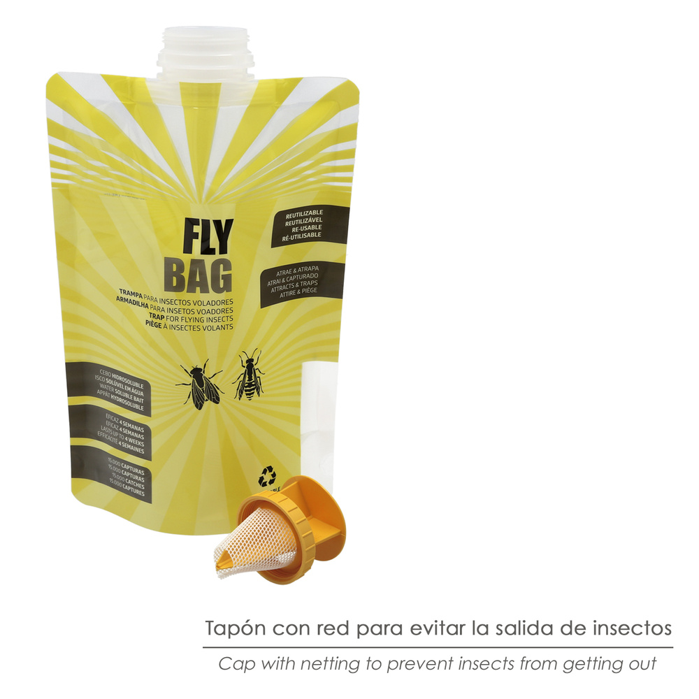 – Trampa para moscas reutilizable. 100% alimentario. Sin productos nocivos.