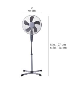 Ventilador Pie Ø 40 x 135 cm. 45 W. Oscilación Automatica, Altura Regulable, Cabezal Inclinable, Base Estable 60×60 cm.